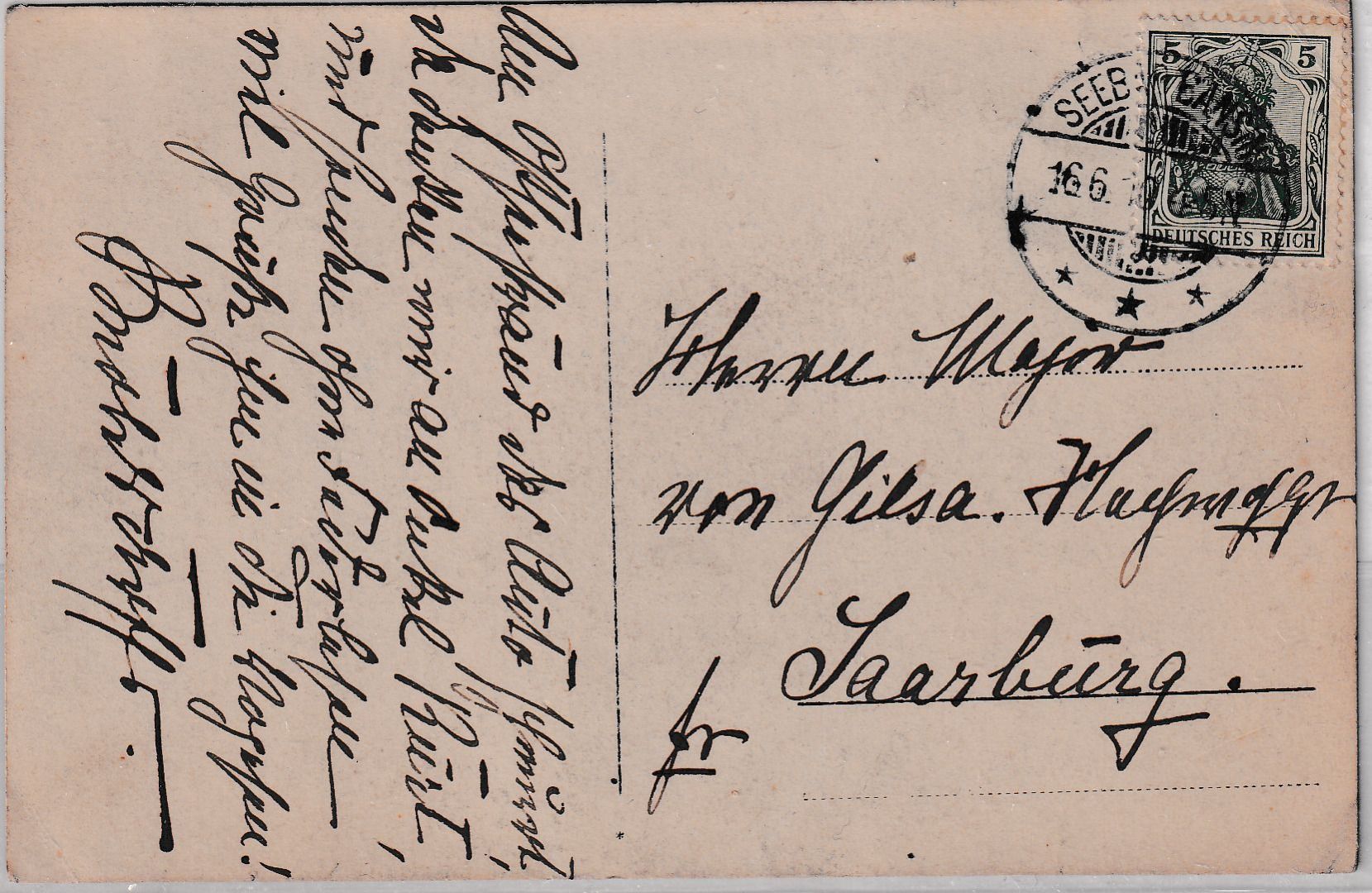 Kartentext: "Am Ostseestrand das Auto schnurrt, da dachten wir an Onkel Kurt, und senden ohne Federlesen viel Grüße ihm in die Vogesen!"