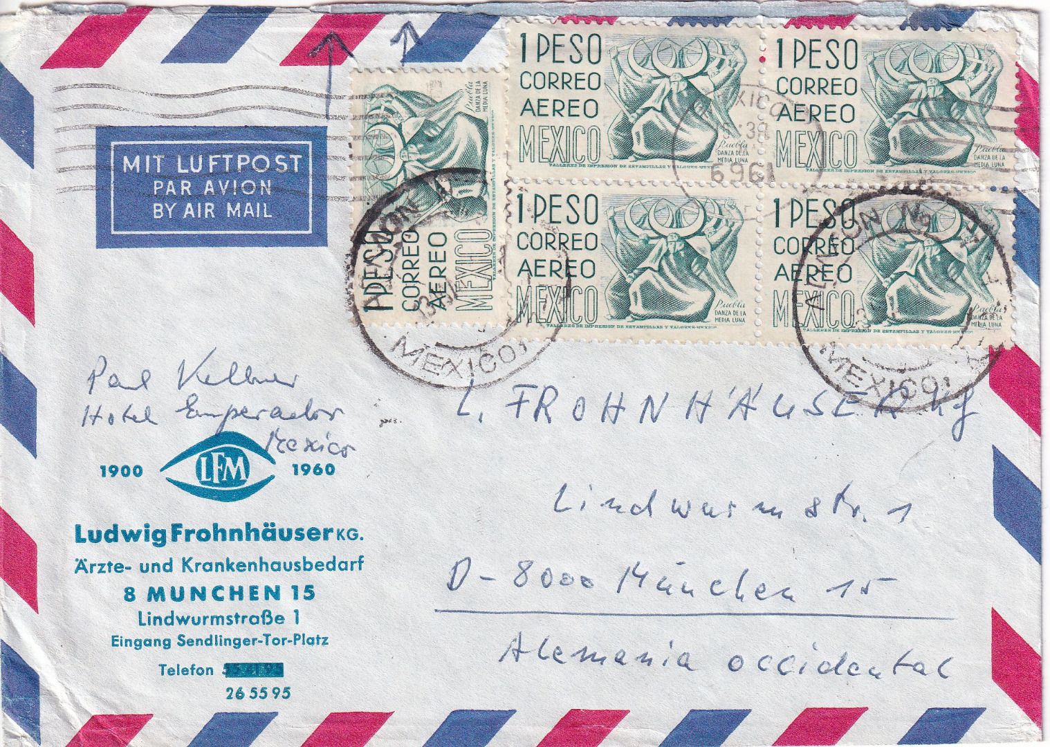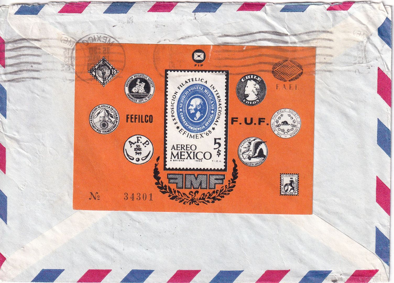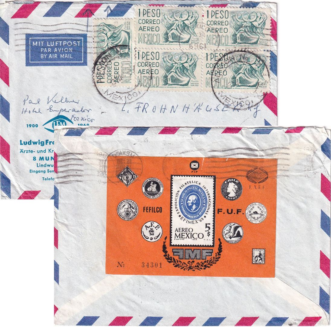 Mexiko - EFIMEX'68 5 P. Blockausgabe u.a. Luftpostbrief n. München 1968