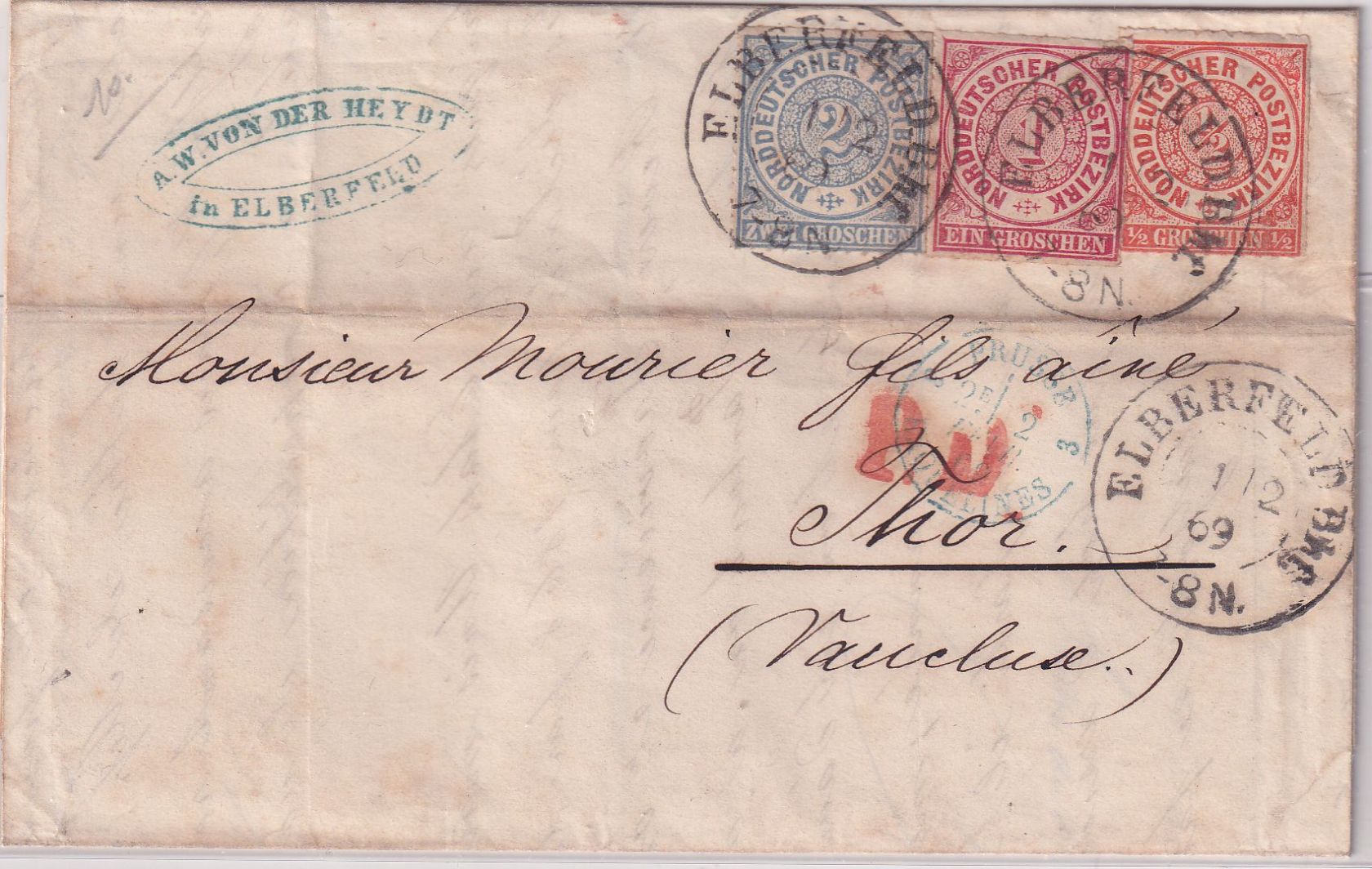 vds. blauer Grenzübergangsstpl. "Prusse - 3 - Erquellines" und roter "PD" - mit Inhalt