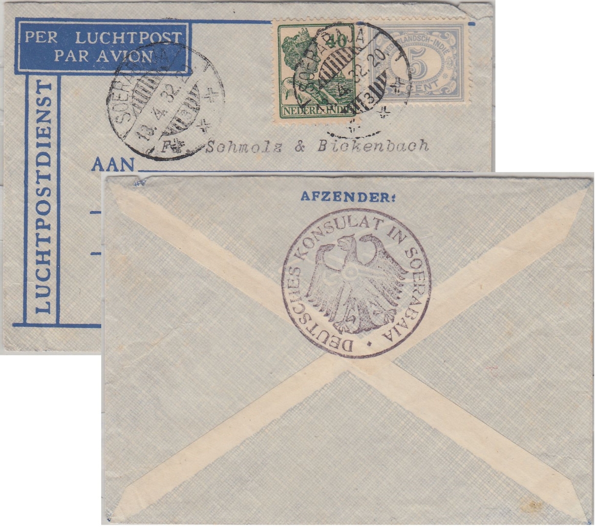 rs. Absenderstpl. "Deutsches Konsulat in Soerabaja" - ohne Inhalt