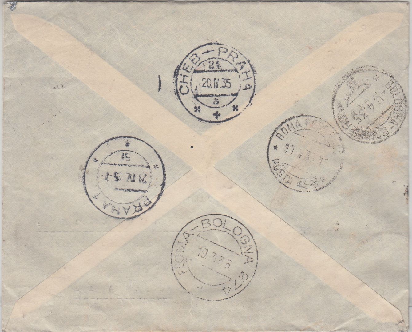 gelaufen n. TSCHECHIEN (Prag) - rs. diverse Bahnpost-Stpl. Rom/Bologna, Cheb/Prag etc. - ohne Inhalt
