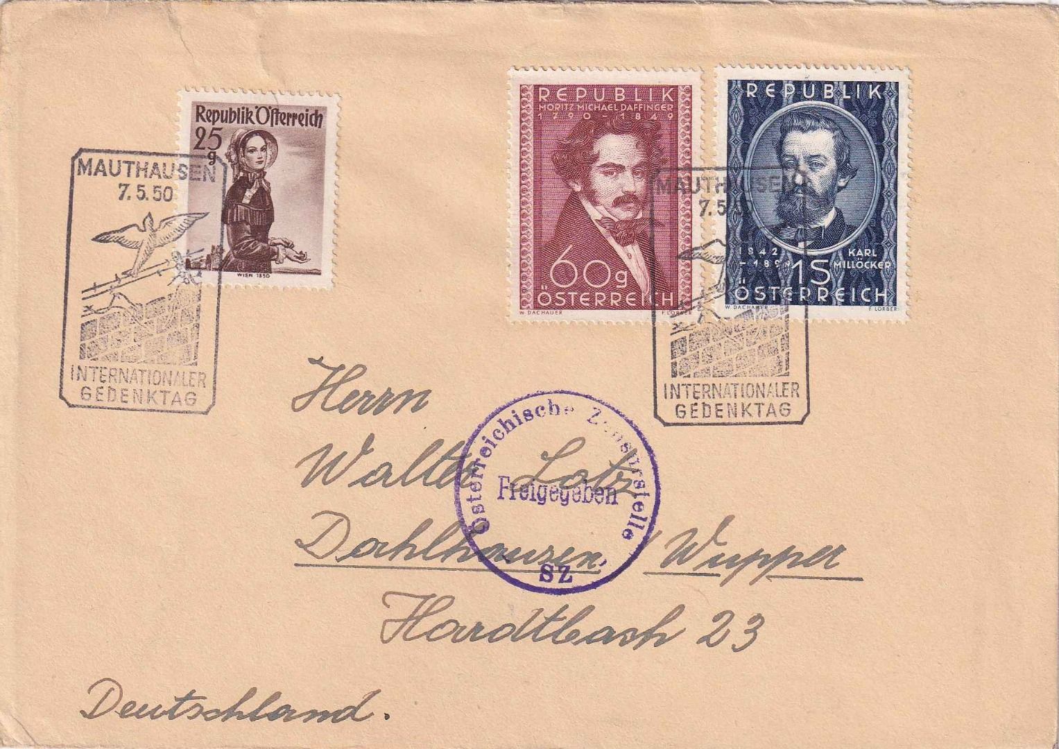 gelaufen n. Dahlhausen - 25g oben kl. Risschen - ohne Inhalt - österr. Zensurstempel - Stichwort: Holocaust