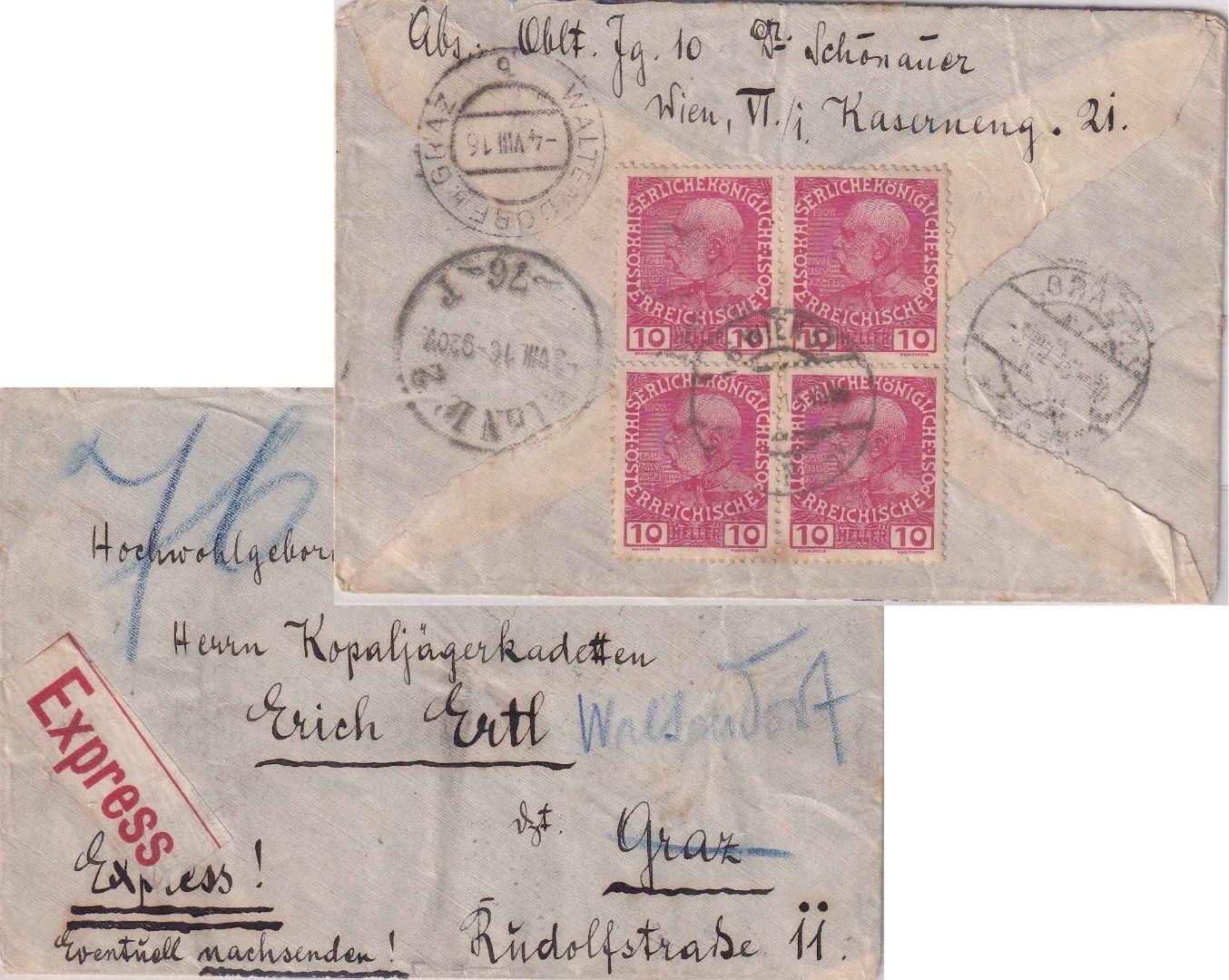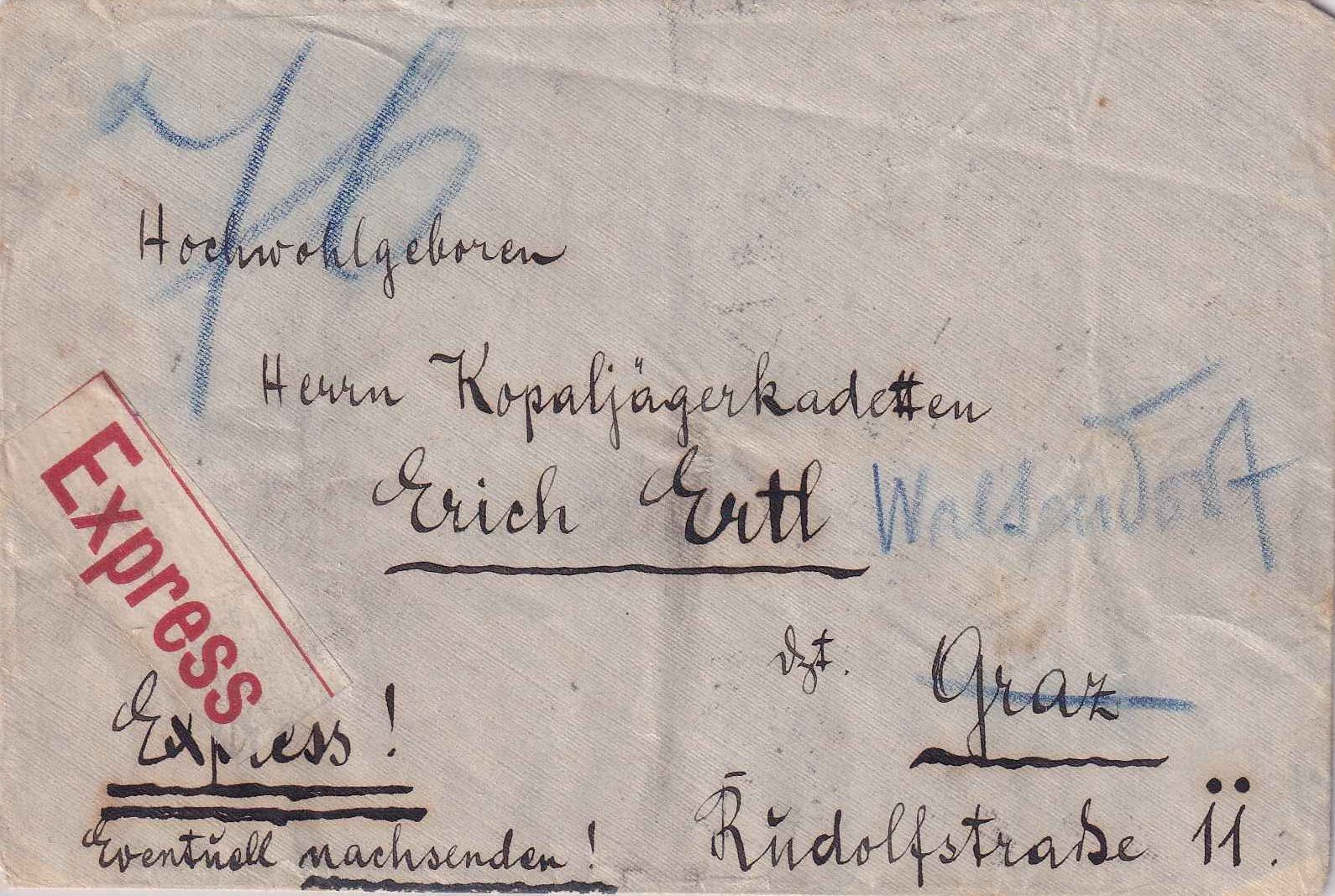 weitergeleitet nach Waltendorf - innerhalb per Rohrpost befördert - ohne Inhalt - Kuvert (übliche) kleine Rohrpostspuren