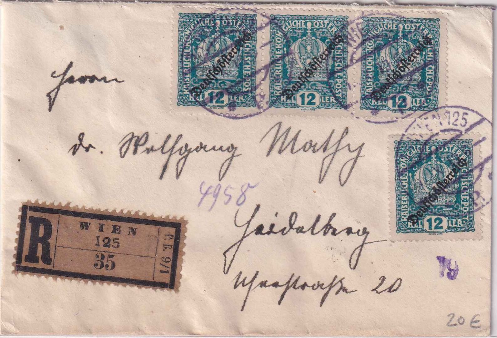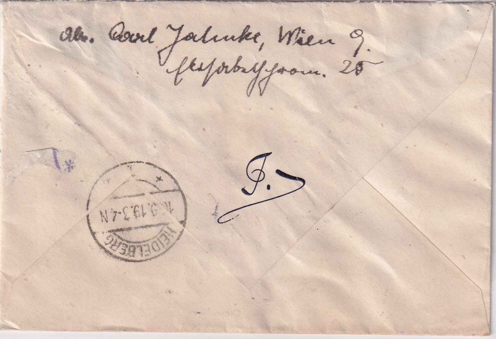 gelaufen n. Heidelberg - Tarif v. 1.9.18 bis 15.1.20: Brief bis 20g 20 H. + 25 H. Einschreibegebühr (3 H. überfrankiert) - ohne Inhalt