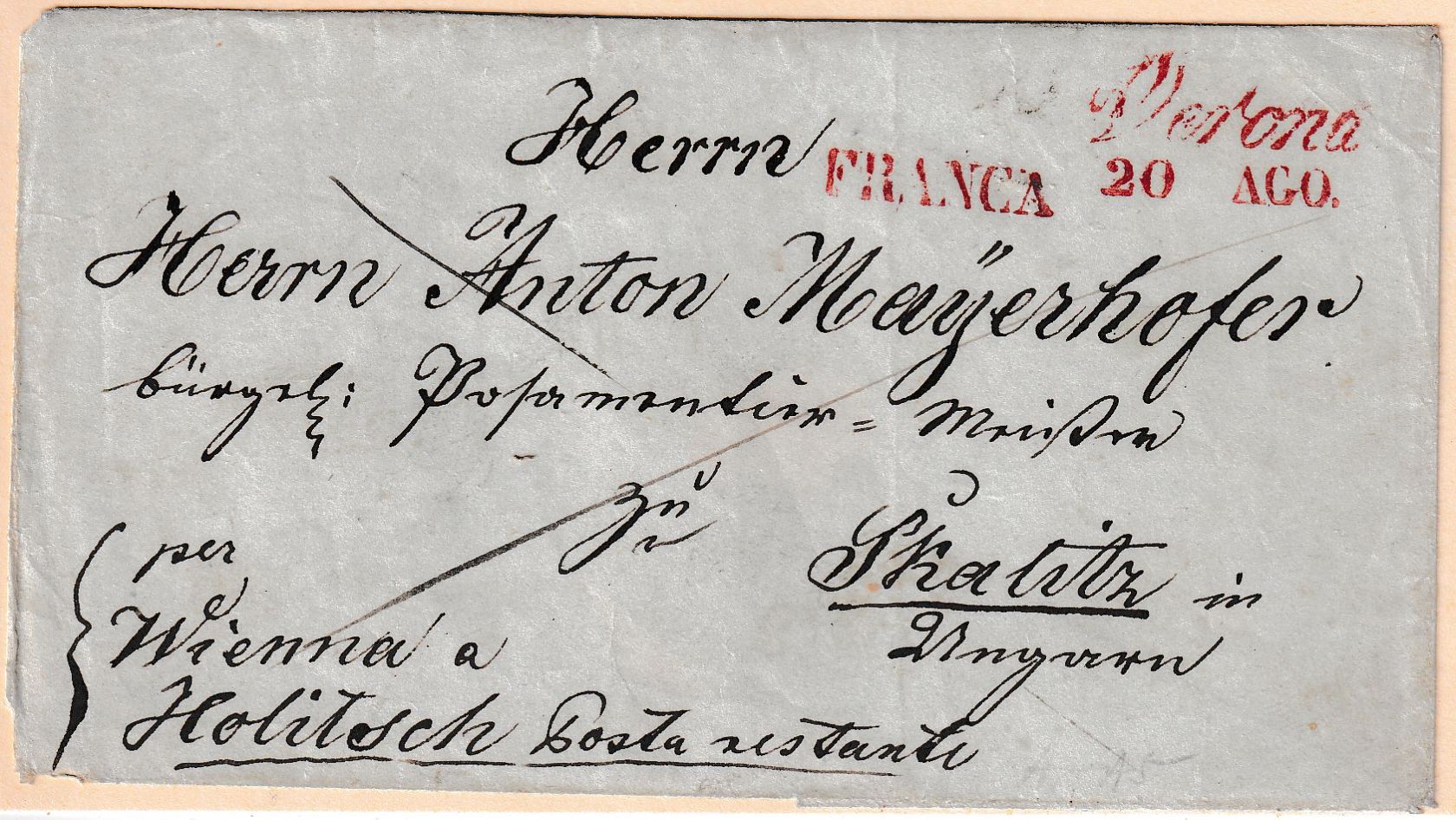 gelaufen n. Skalitz/Posta restante (Slowakei, damals noch ungarisch) - Briefhülle ohne Inhalt