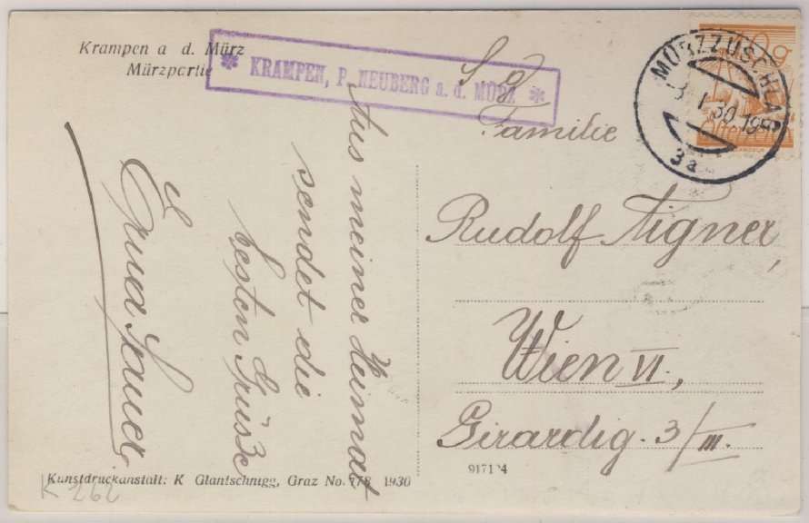 Österreich - Postablage Krampen P. Neuberg a.d. Mürz Ansichtskarte Krampen 1930