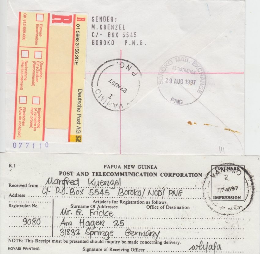 Marke ex Block - ohne Inhalt - mit Einlieferungsschein