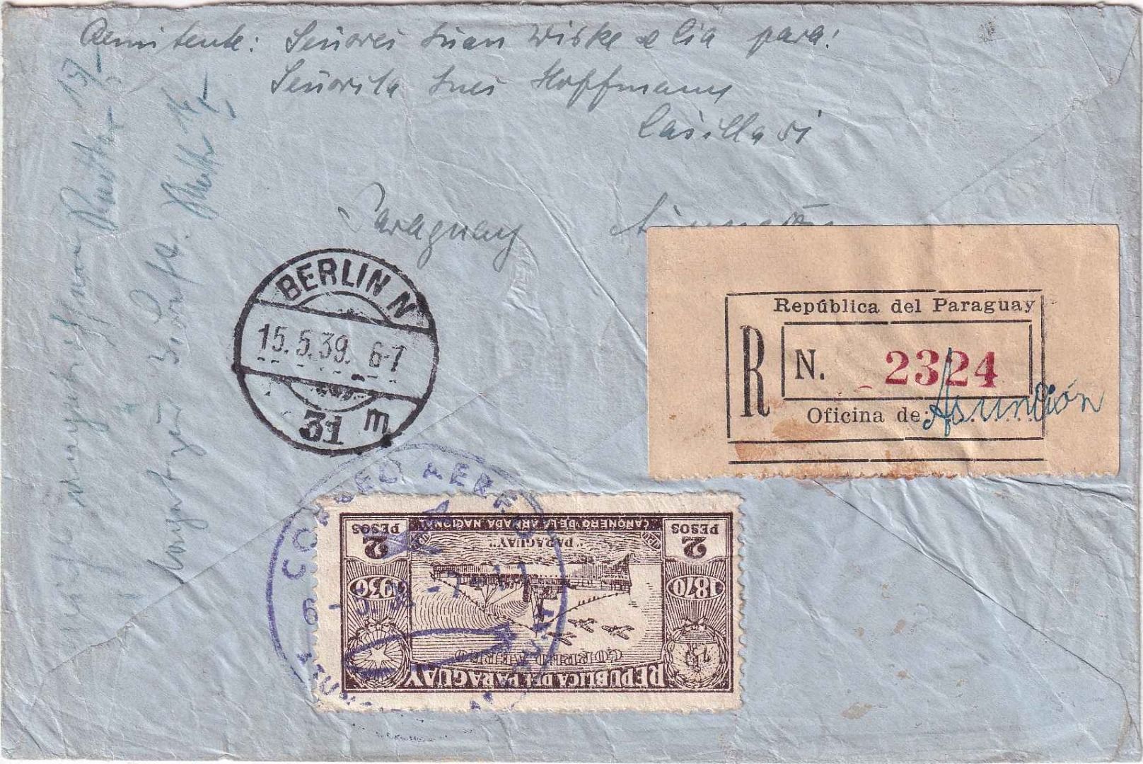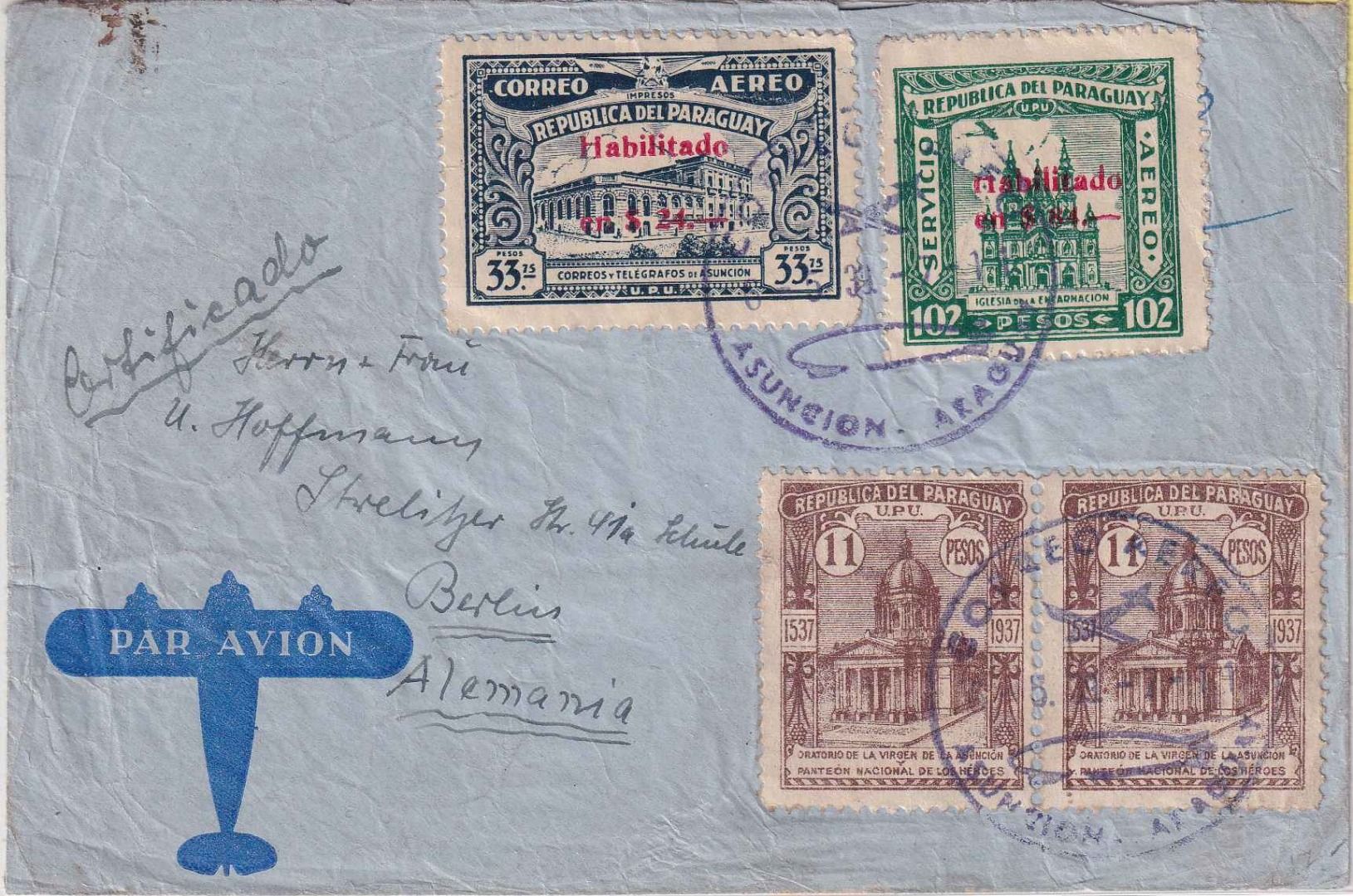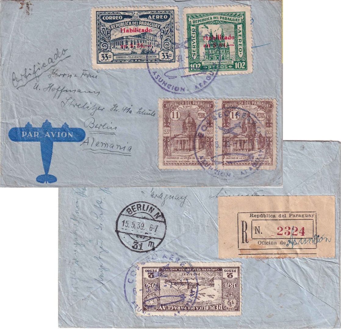 Paraguay - 84$/102 P. Flugpost u.a. Lupo-Einschreibebrief Asuncion - Berlin 1939