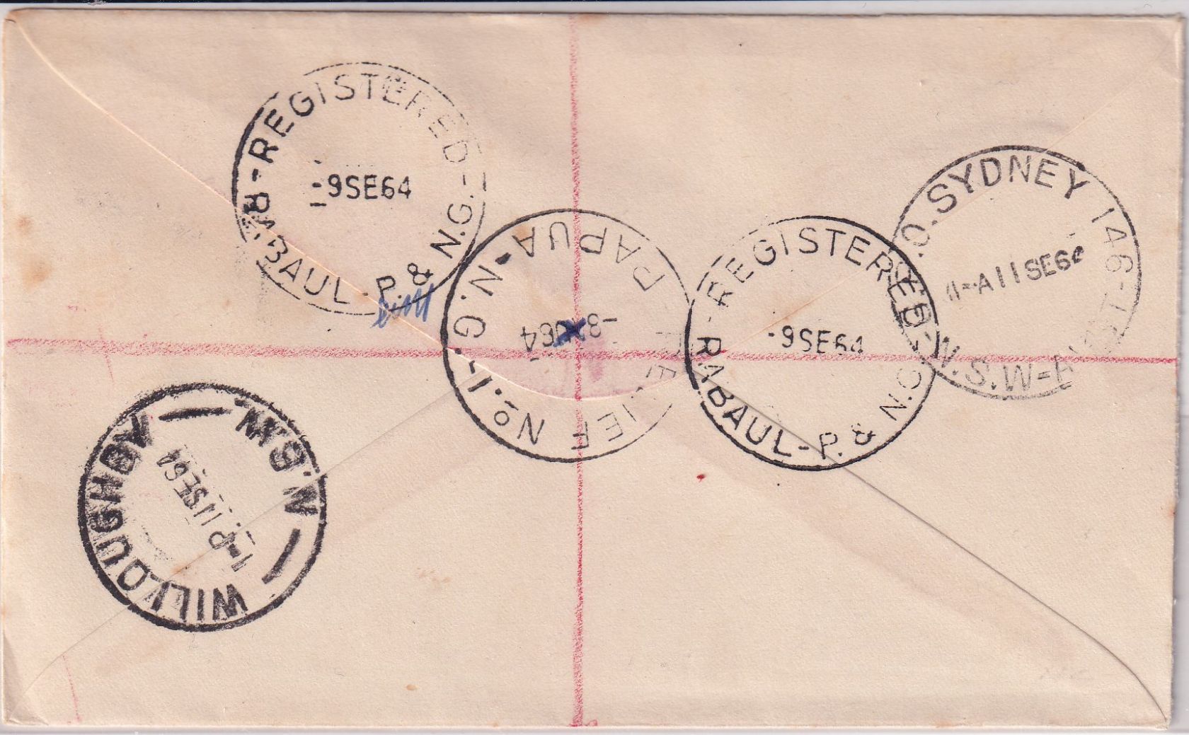 gelaufen n. Willoughby - Aushilfs-R-Zettel und Aushilfsstempel vom 8.9. (ERSTTAG !!) bis 4.11.64 - 1x Tagesstempel fehlerhaft (8. AUG.) abgeschlagen - ohne Inhalt