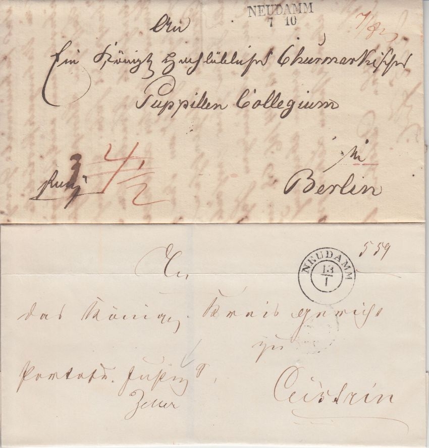 dazu Justizsache mit K2 Neudamm 13/1 (ohne Inhalt, ca. 1840)