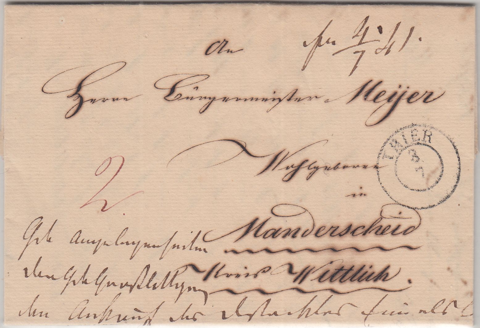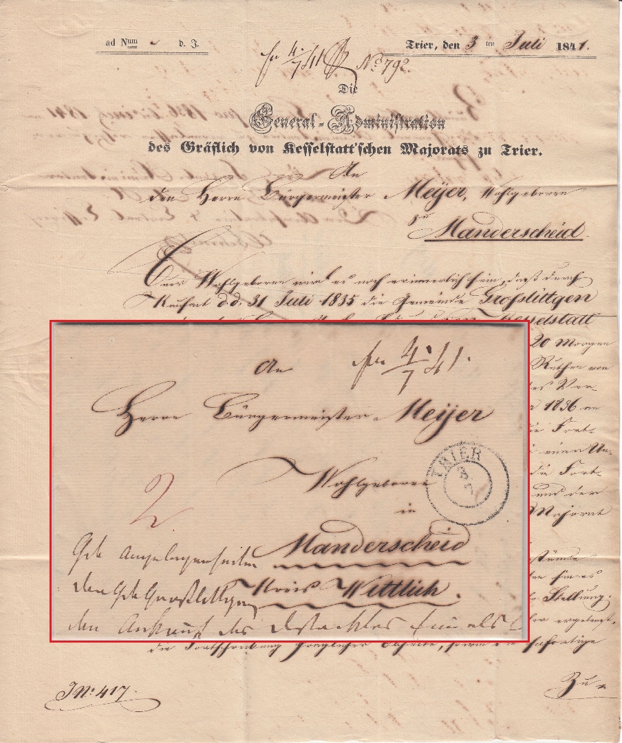 mit Inhalt: Briefbogenvordruck d. "General-Administration des Gräflich von Kesselstatt'schen Majorats zu Trier"