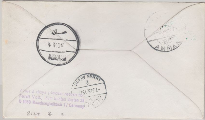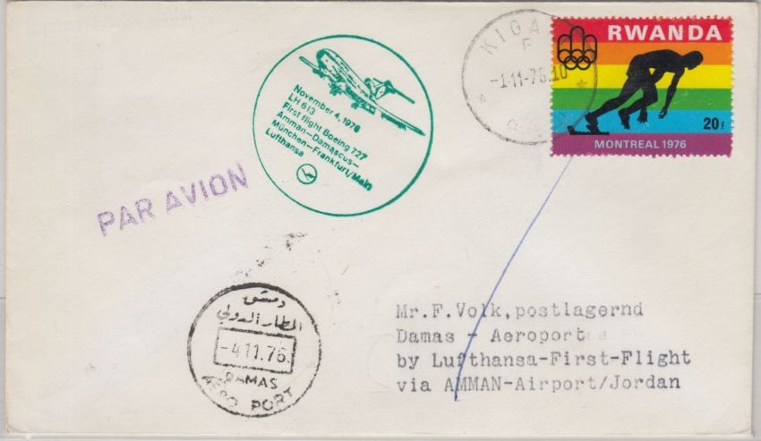 Zuleitung auf Lufthansa 1st-Flug Amman - Frankfurt (Etappe Amman - Damaskus) 1976 - Marke ex Block (Mi. ohne Bewertung) - selten !!