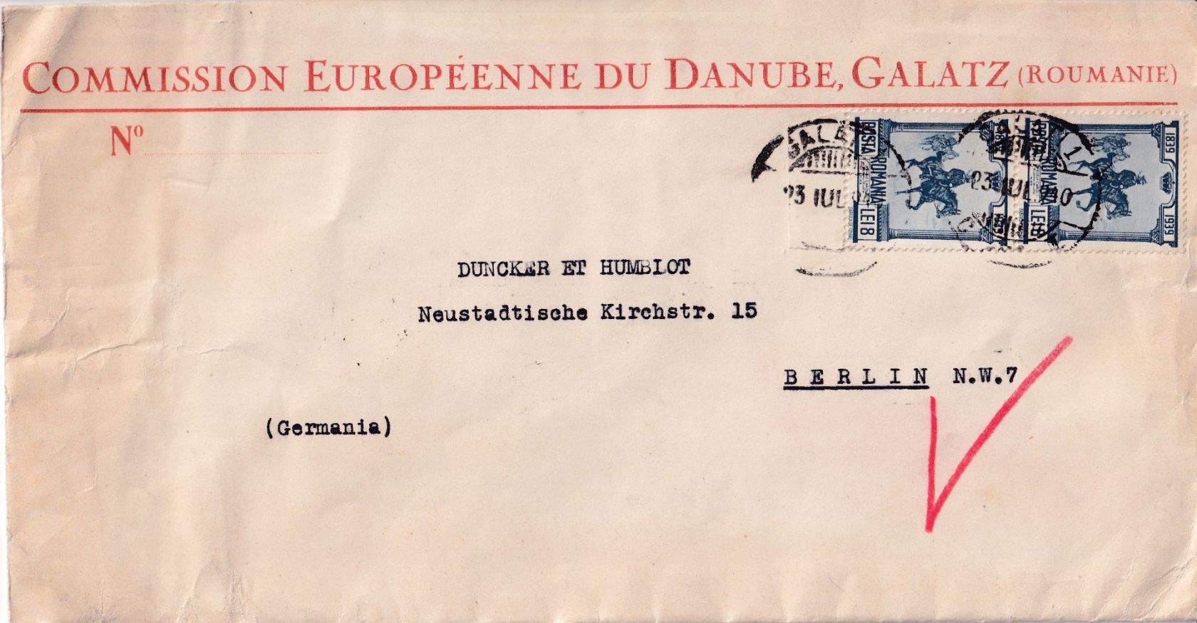 Vordruckkuvert "Commission Europeenne du Danube" - ohne Inhalt