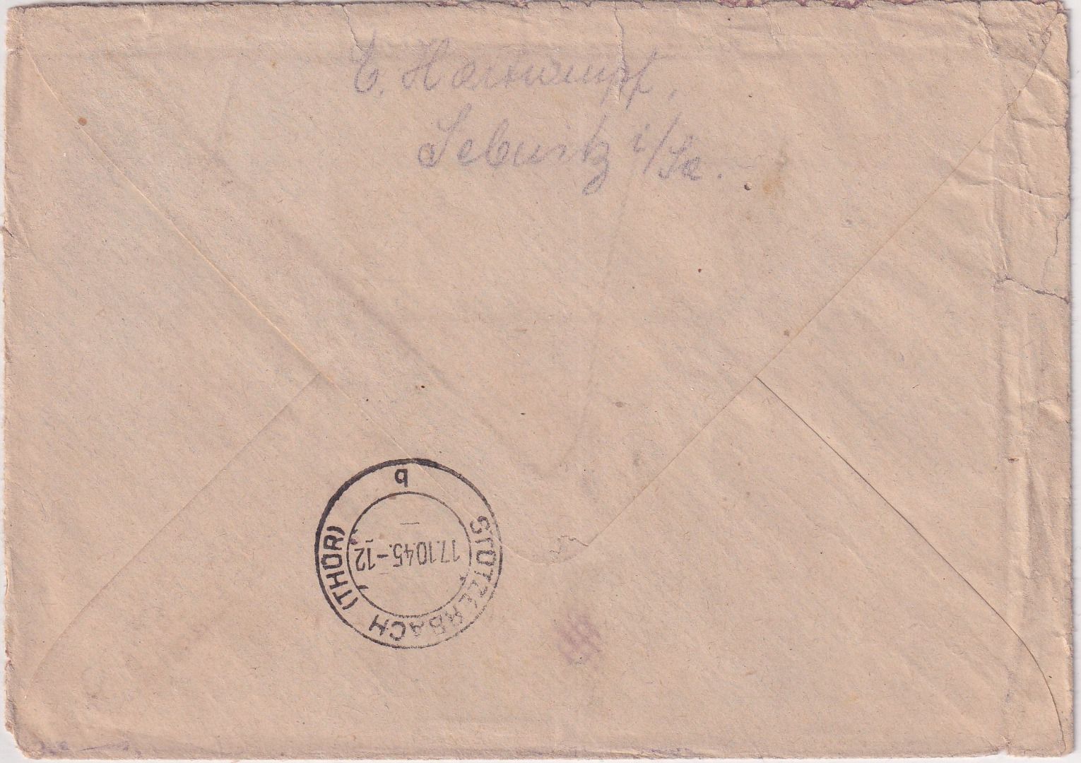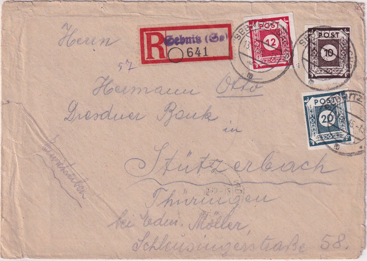 gelaufen n. Stürzerbach - Kuvert kl. Alters-/Gebrauchsspuren - Blanko-R-Zettel mit Orts-L1 - ohne Inhalt