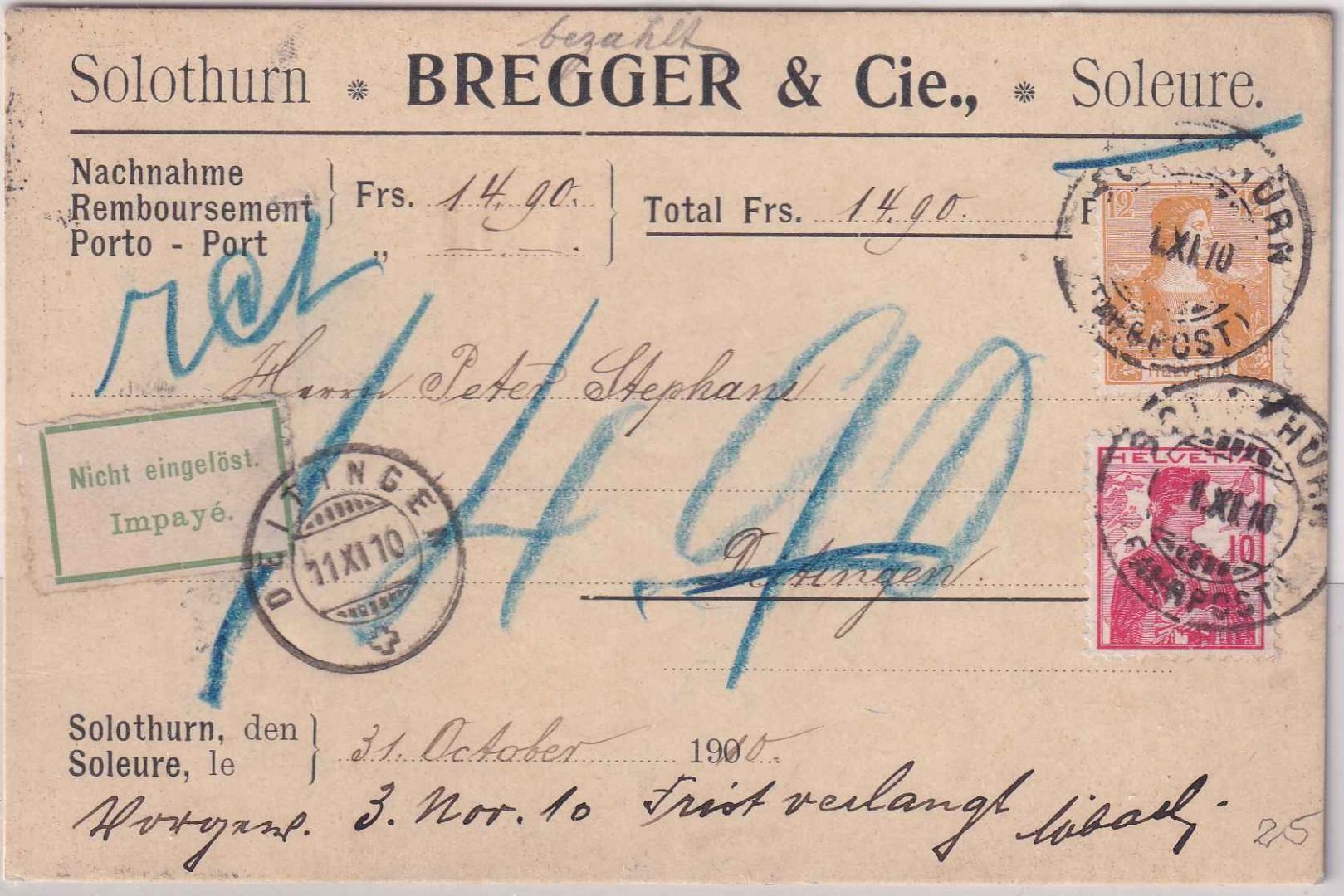 hds. Vermker "Frist verlangt" - Aufkleber "Nicht eingelöst" - Retourvermerk