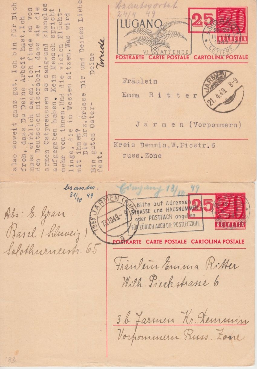 zwei versch. Ankunftsstempel - interessant für den Heimatsammler Jarmen !!
