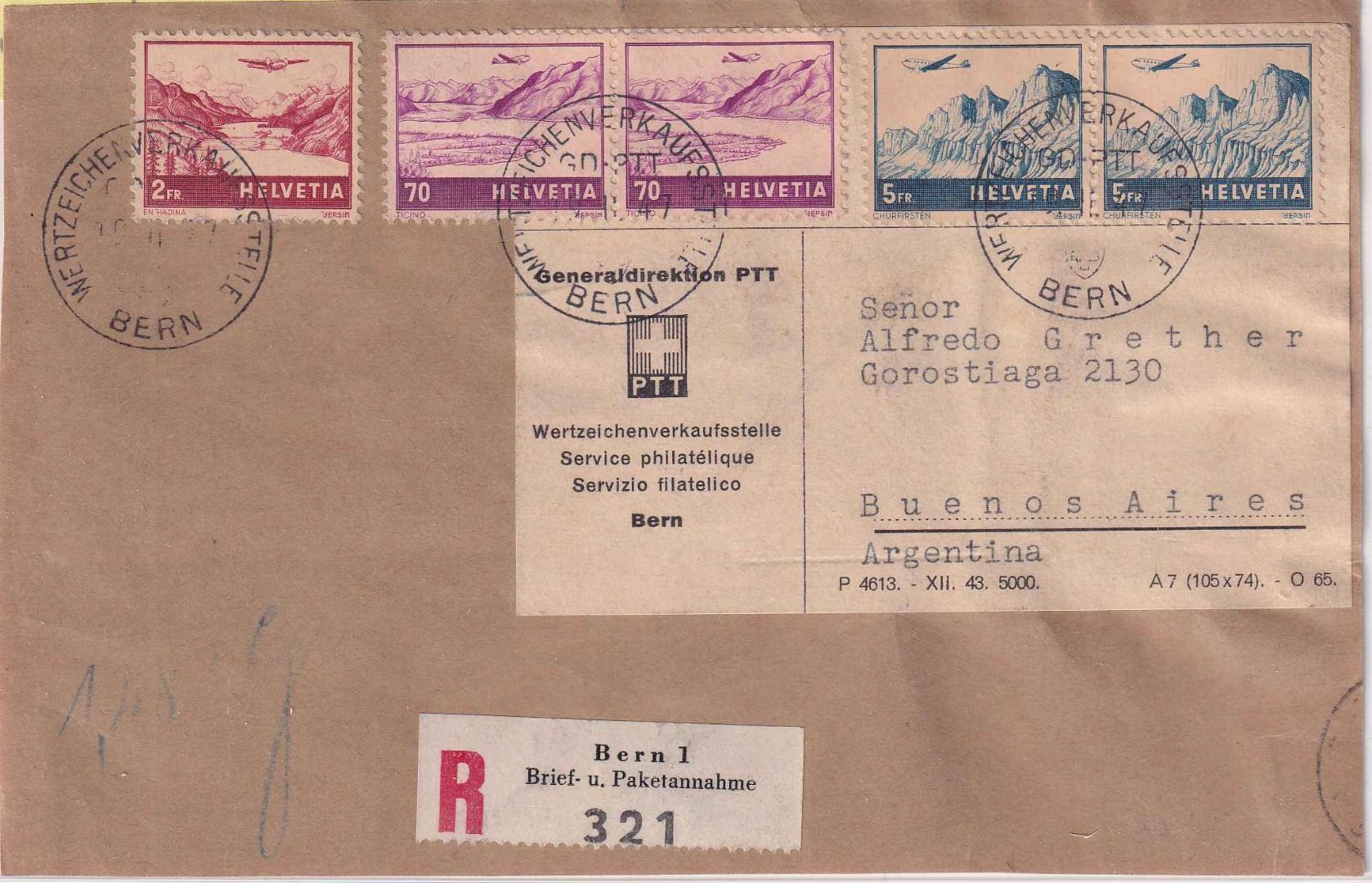 gelaufen nach Buenos Aires - gewichts-/formatgedingt nur VORDERseite (1.283 Gramm !) - seltene Portostufe !! - Abs. Generaldirektion PTT/Wertzeichenverkaufsstelle