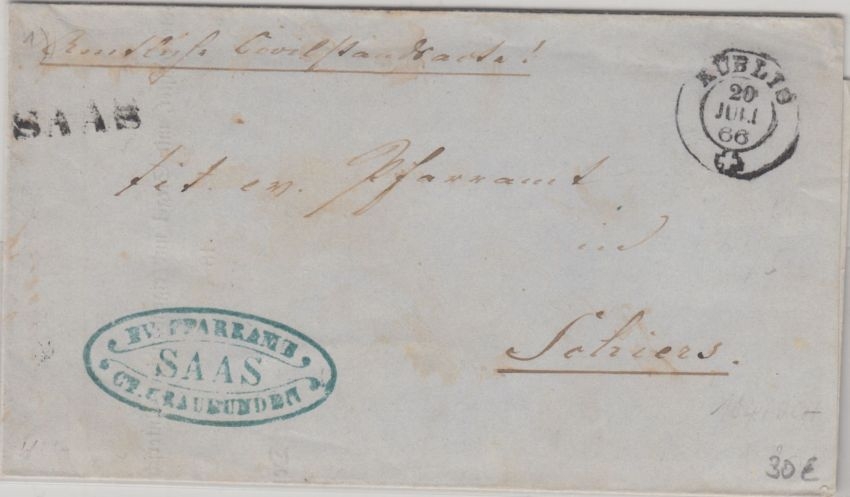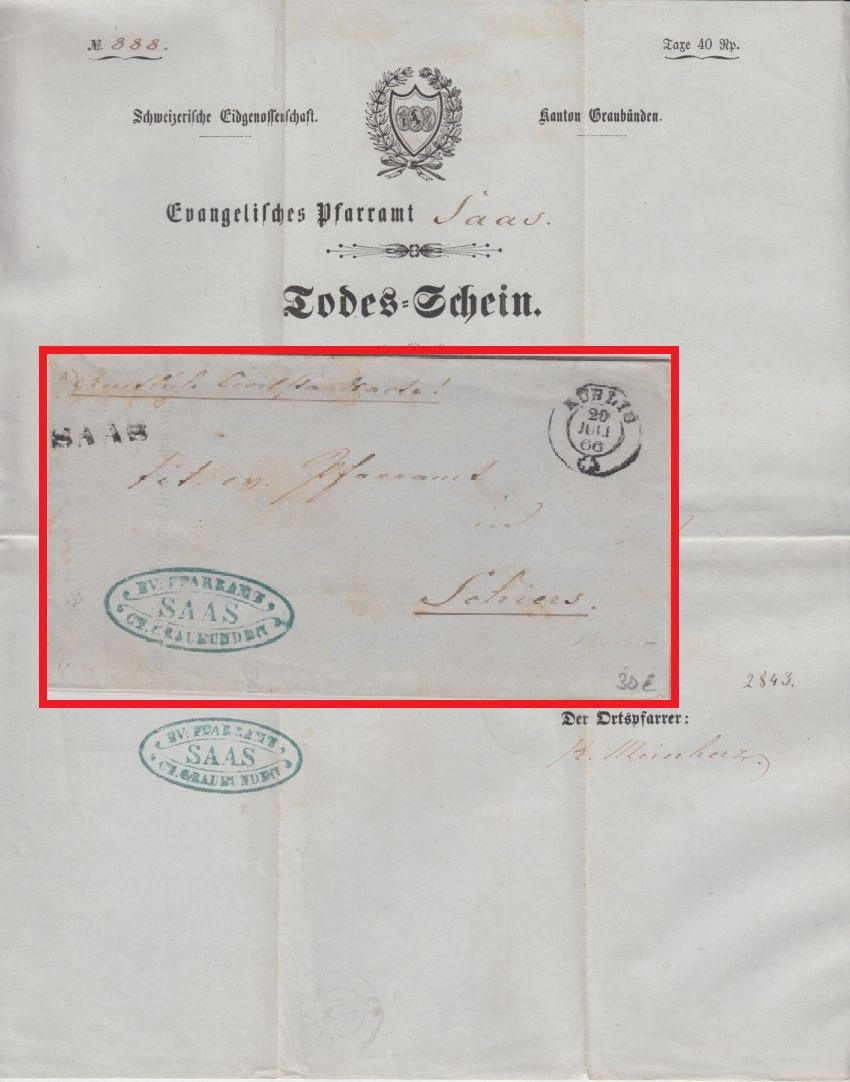 Inhalt: Todesschein d. Evangelischen Pfarramtes Saas