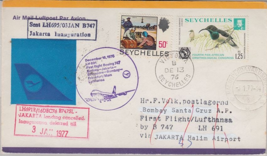 Zuleitungspost a. Etappe Jakarta Bombay - selten !!