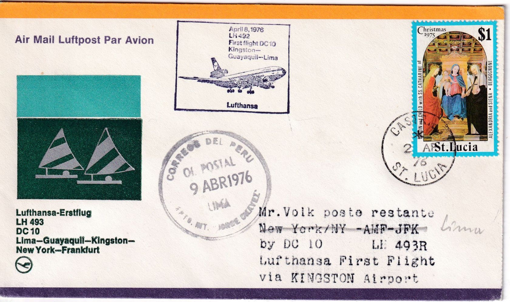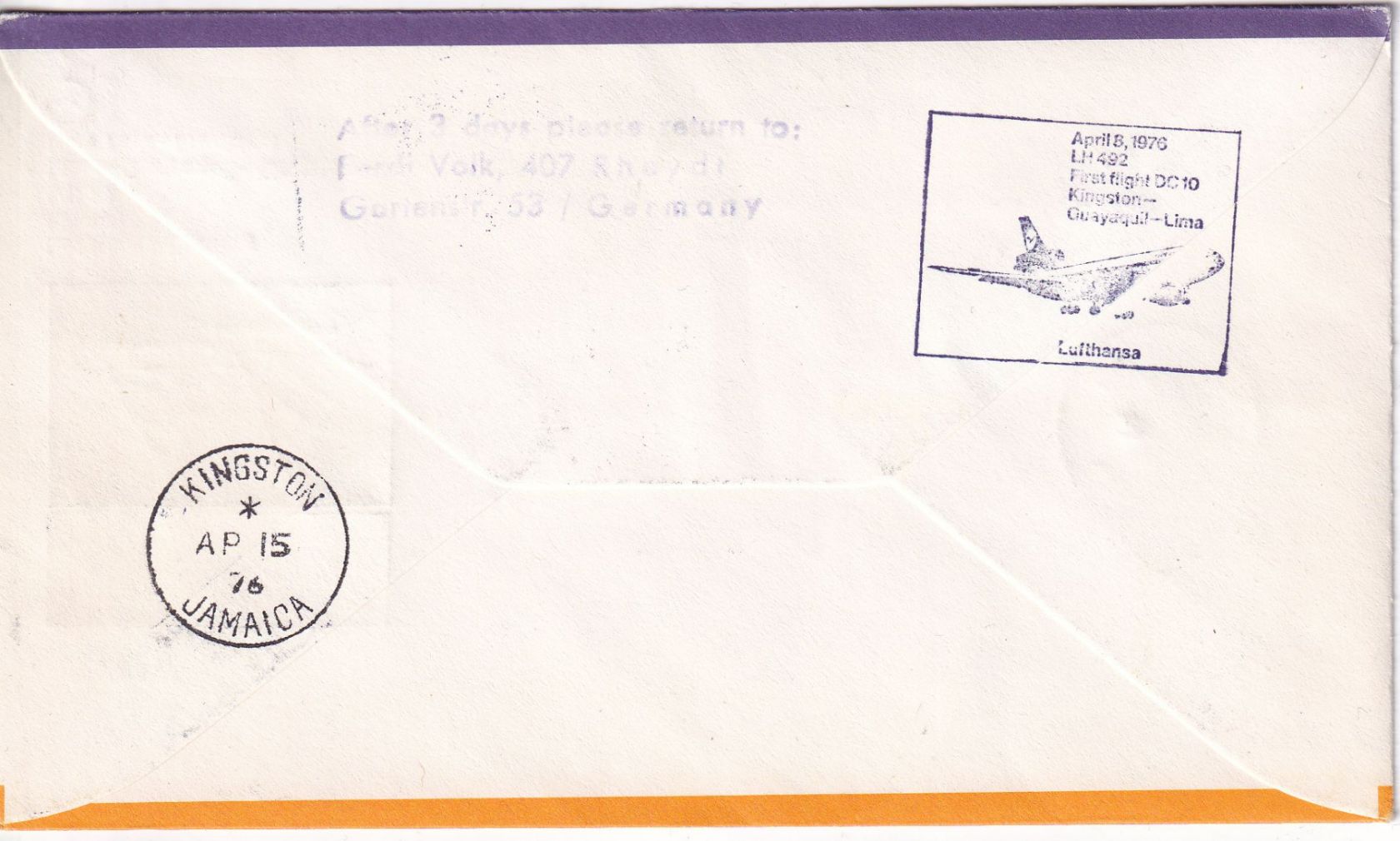 Zuleitungspost zum Lufthansa-Erstflug Kingston-Lima