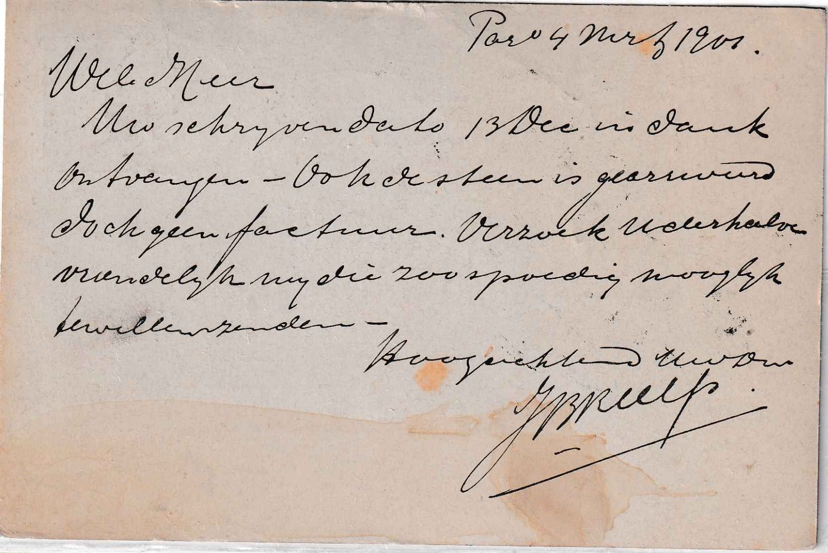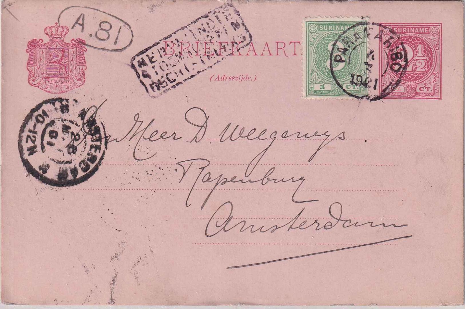 Niederl. Schiffspost-Ra3 als Nebenstempel - Karte rs. leicht fleckig