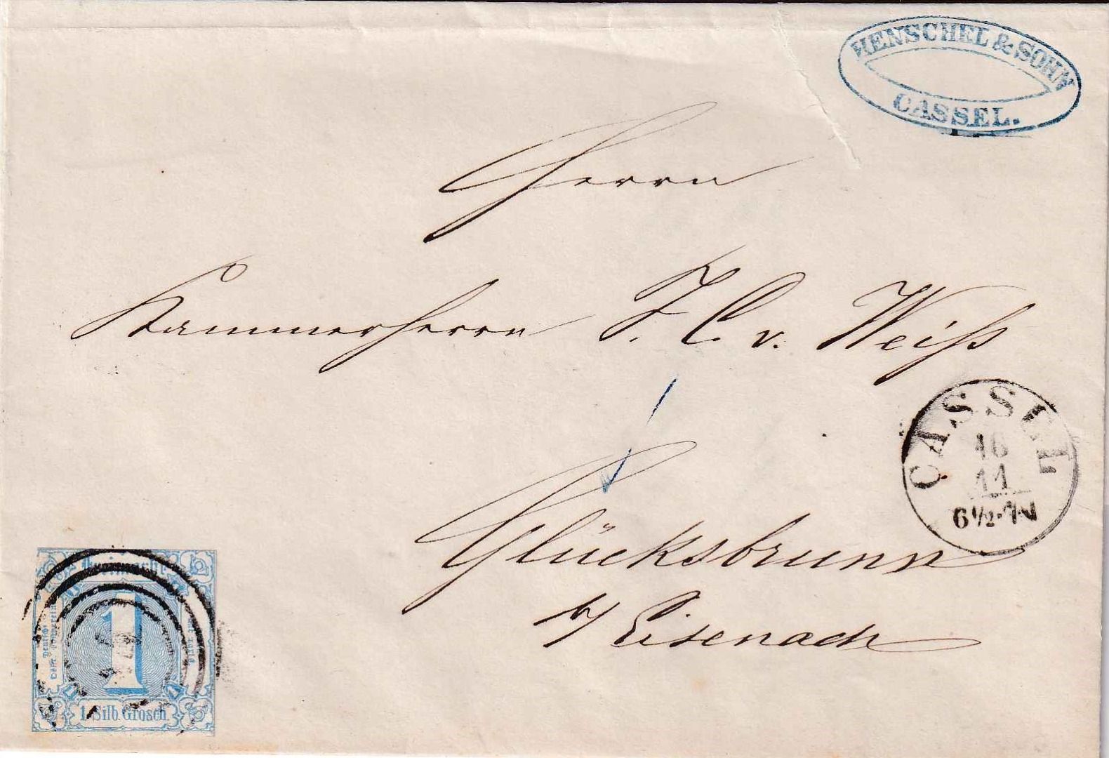 Thurn & Taxis - 1 Sgr. blau geschn. Brief Ring 14 Cassel 16/11 (1860)