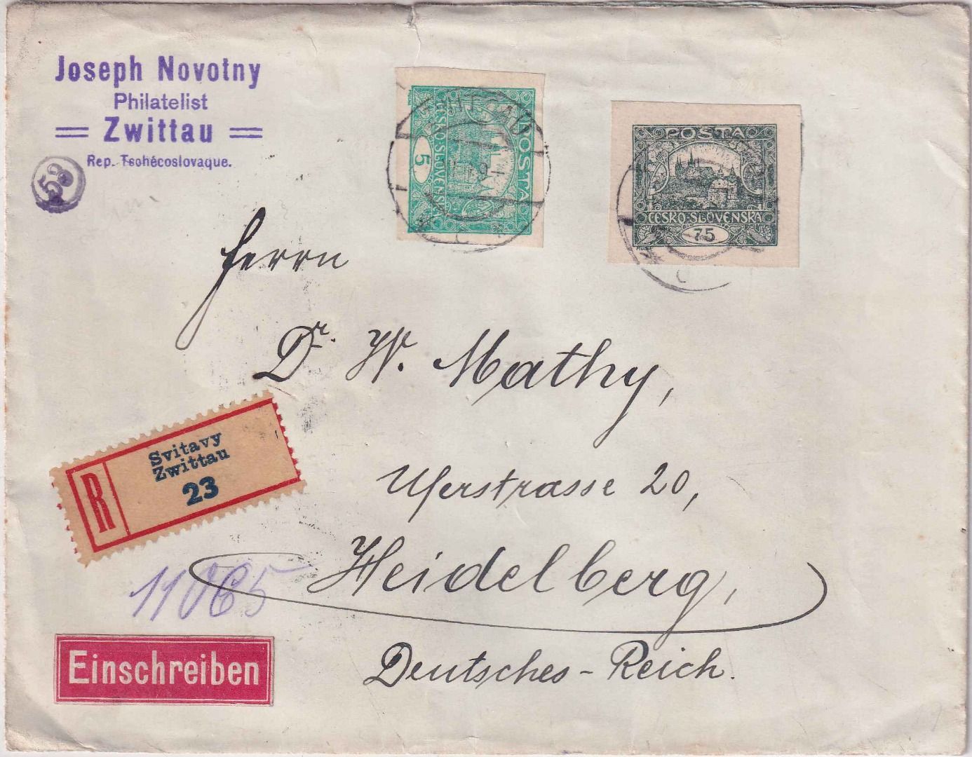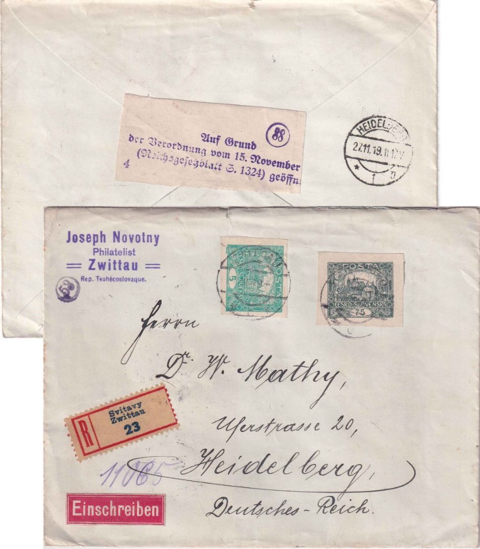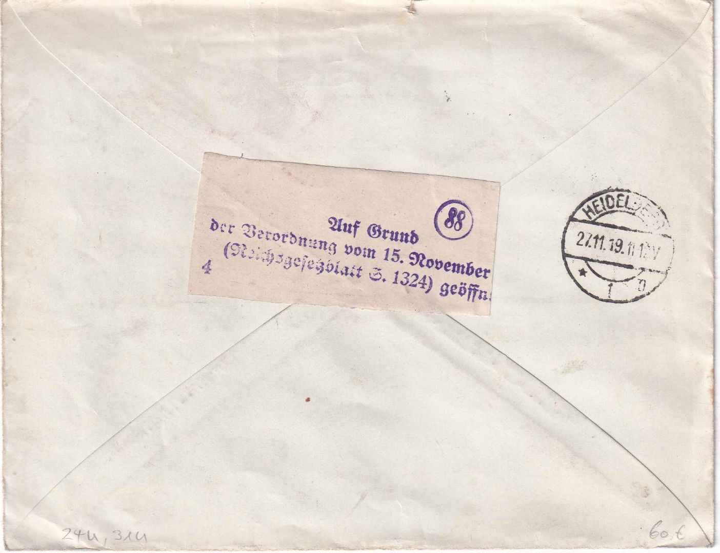 gelaufen n. Heidelberg - rs. provisorischer Devisenzensurverschluß (Blankozettel mit Gummistpl.: "Auf Grund der Verordnung..." (vermutlich Postüberwachungsstelle Dresden) - ohne Inhalt
