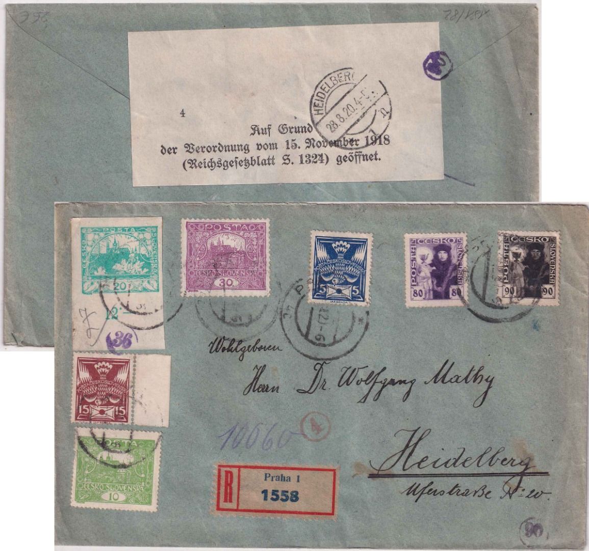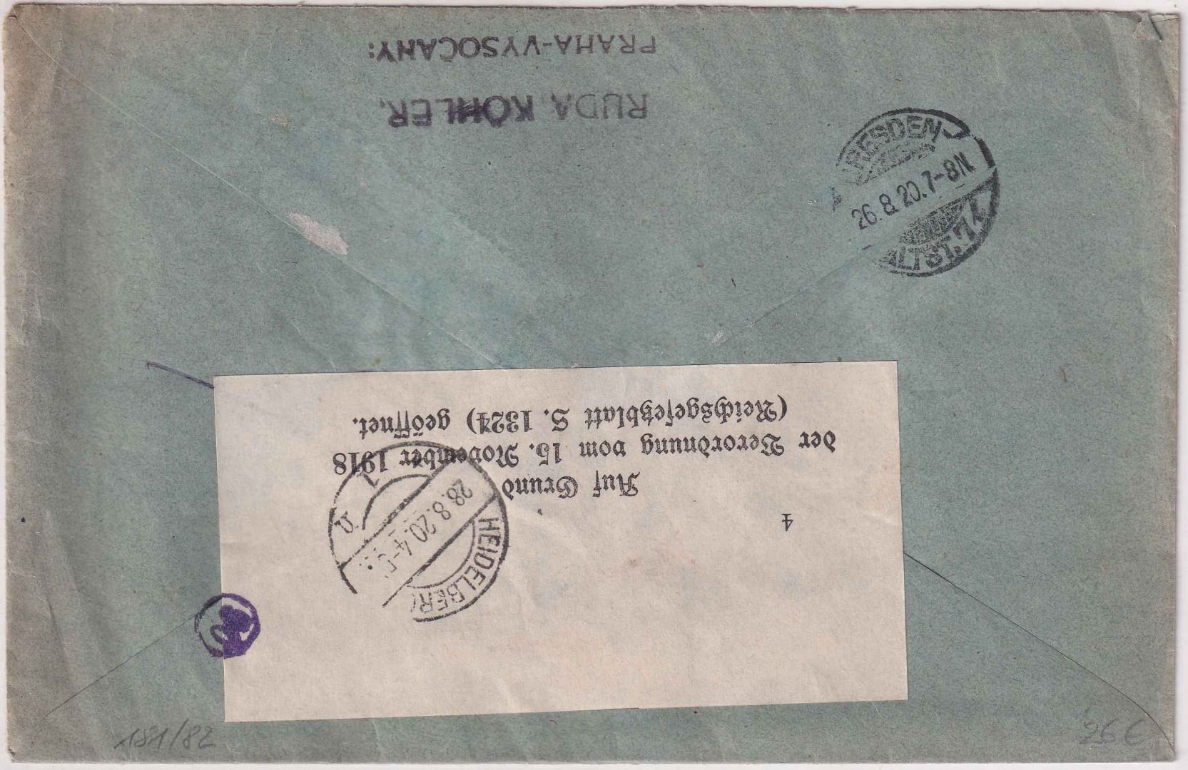 gelaufen n. Heidelberg - rs. Devisenzensurverschluß (Überwachungsstelle Dresden) "Auf Grund der Verordnung..." - ohne Inhalt