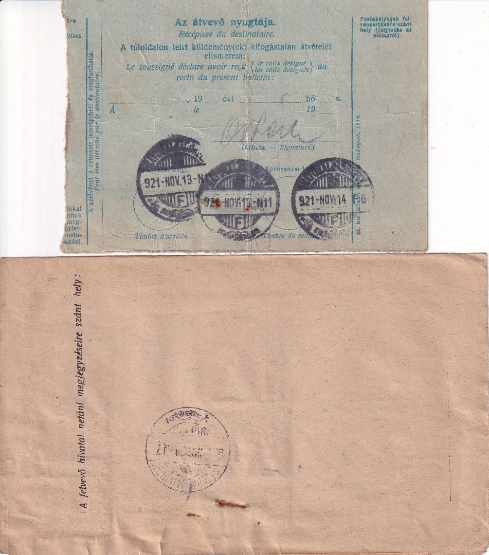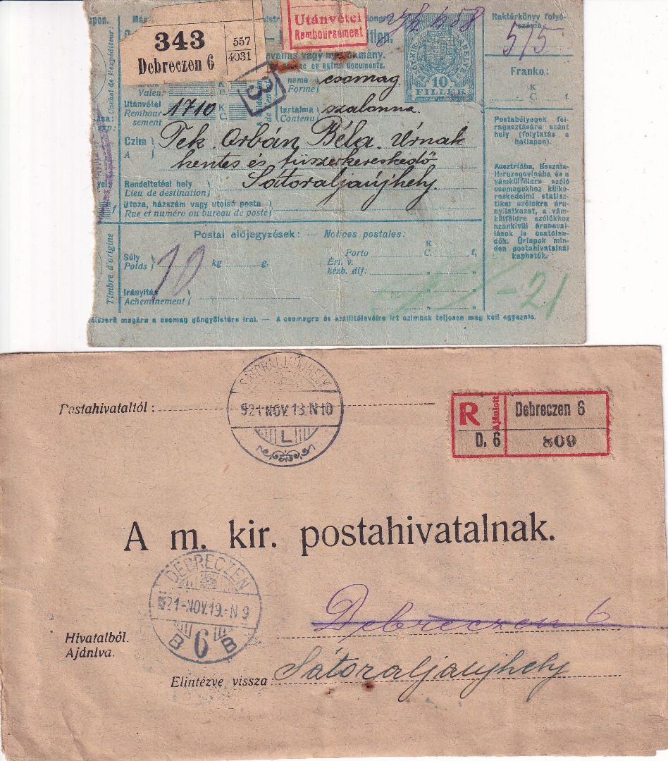 Paketkarte mit zugehöriger Postsache/Einschreiben (Portoreklamation) n. Sátoraljaújhely - selten, dass man die zusammengehörigen Belege findet !
