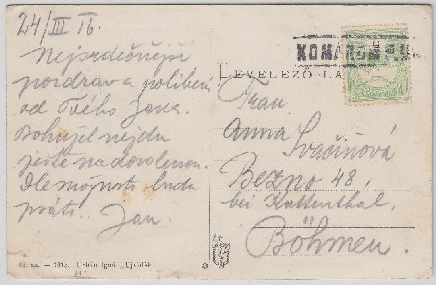 Ungarn/Serbien - Komarom Stations-L1 Ansichtskarte Ujvidek n. Kuttenthal 1916
