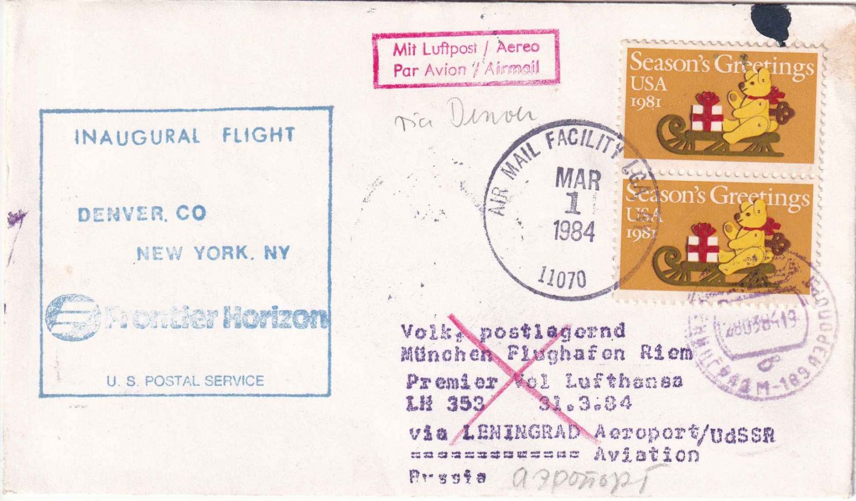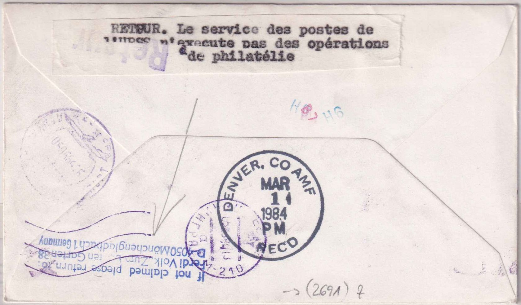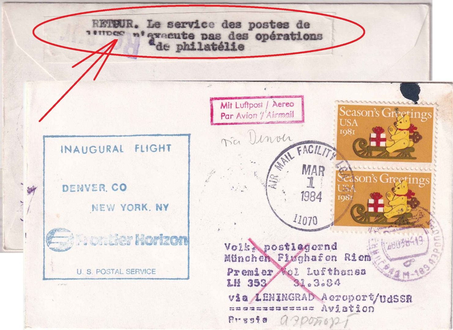 rückseitig Hinweiszettel f. Zurückweisung - aussergewöhnlicher Erstflugbeleg - ohne Inhalt