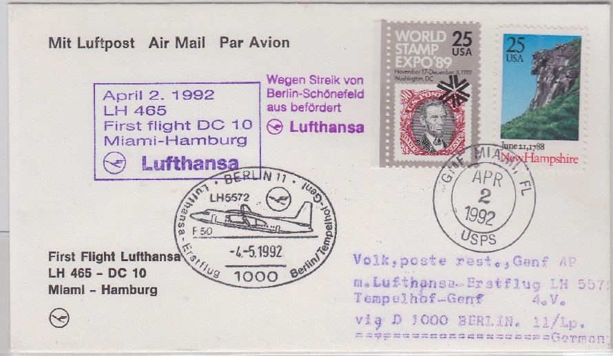 1992 - Hinweisstempel auf Umleitung wegen Streik !