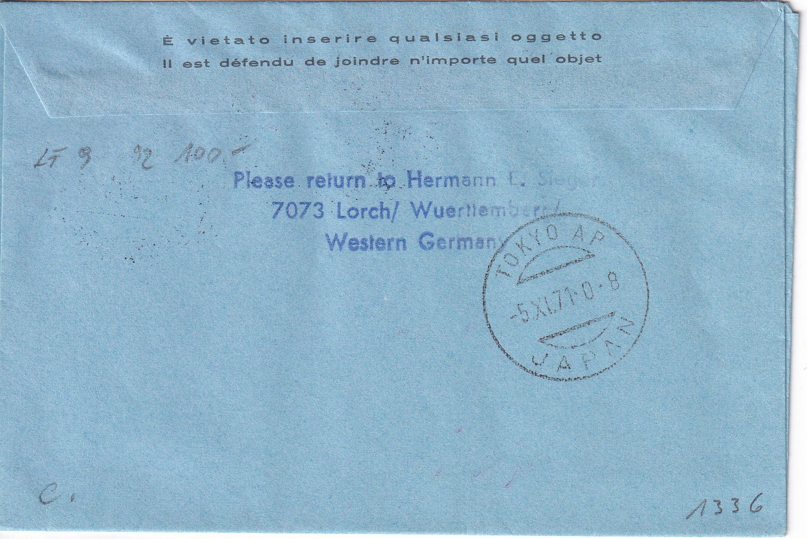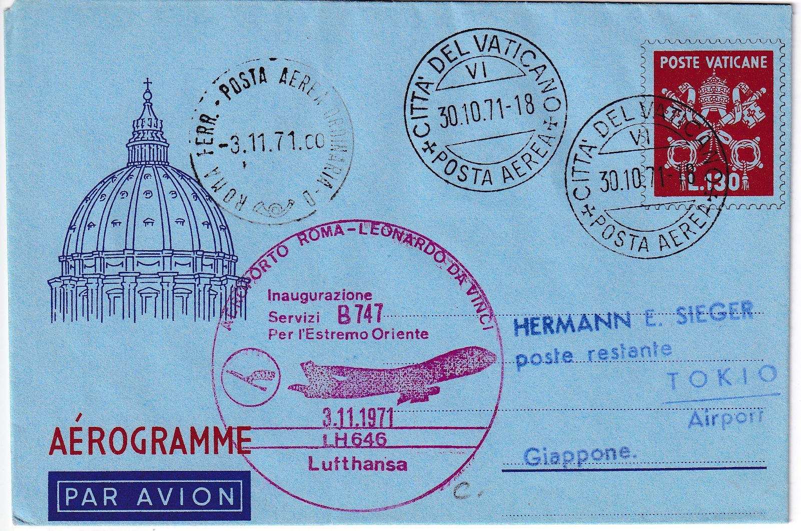 Vatikan - Lufthansa Erstflug Vatikan - Tokyo 3.11.71 130 L. GA/Aerogramme