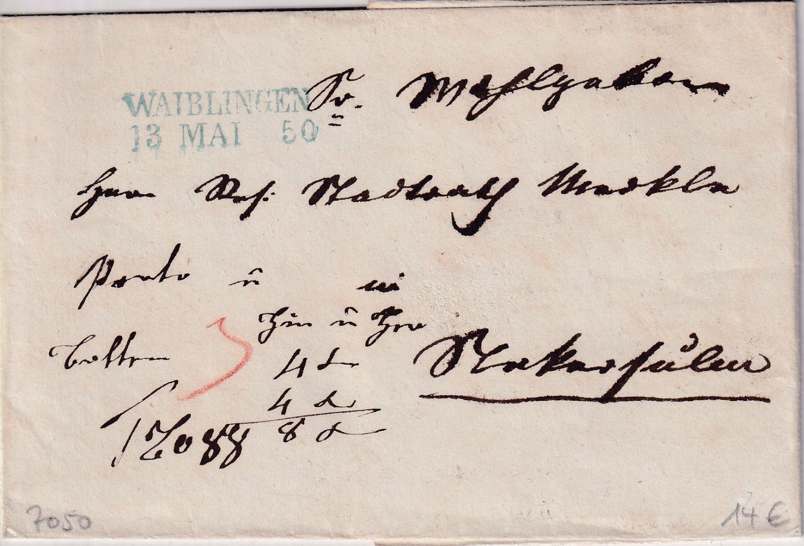 Württemberg - Waiblingen 13. MAI 50 blauer L2 Nachnahmebrief n. Neckarsulm